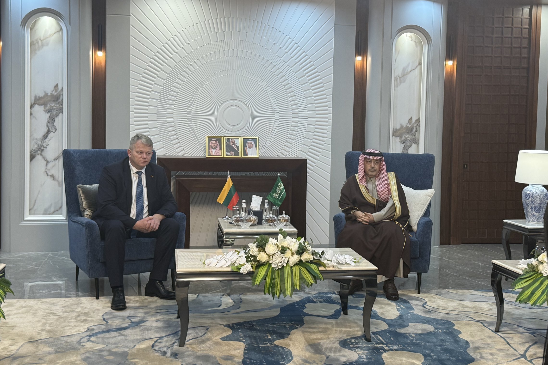 Susitikime su Saudo Arabijos pramonės ir prekybos rūmų federacijos viceprezidentu Emad Sadad Alfakhri aptartos verslo bendradarbiavimo ir logistikos galimybės. Ypatingas dėmesys skirtas vertikalaus ūkininkavimo sprendimams, leidžiantiems taupyti vandenį – tai itin aktualu ribotus vandens išteklius turinčiai Saudo Arabijai. Ministras pakvietė federacijos vadovaujamą verslo misiją atvykti į Lietuvą ir vietoje susipažinti su šalies potencialu.